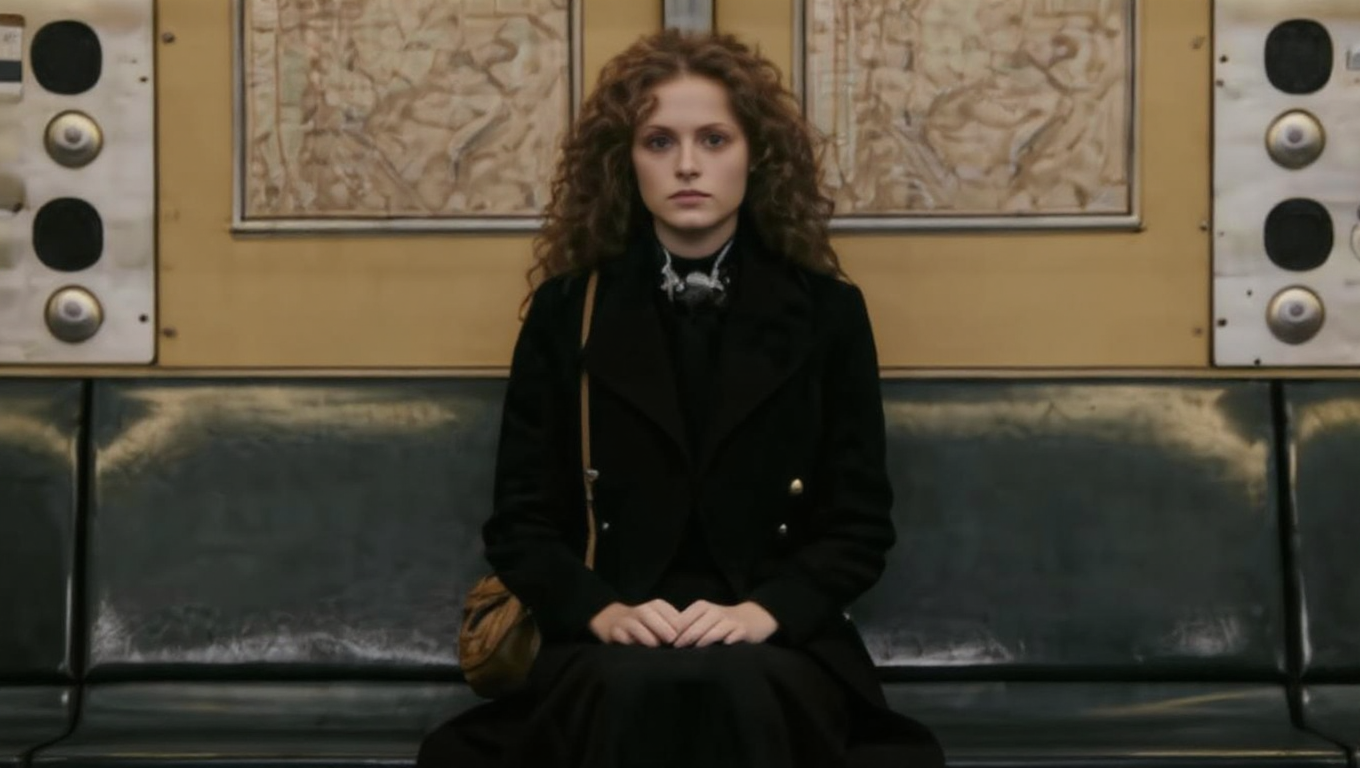 The super wide-angle mid-range horizontal tracking shot opens with the stabilizer moving low to the ground. The cold blue night and the silvery starry sky form a high-contrast romantic movie tone, with strong poetic realism and classical epic temperament. The subject is a young woman wearing a dark green dress, running with all her strength on the garden grass illuminated by the moonlight, and the skirt is lifted by the wind to form a turbulent dynamic curve. Thread, holding a small white flower in her right hand, lifting the hem of her skirt with her left hand, breathing quickly but with a firm gaze; at the 4th second, the camera accelerates as she moves forward, and in the background, many men and women wearing old-era dresses enter the frame from the left and right sides, running side by side with her. Some people try to get closer, some turn around and call out, but no one actually touches her, suggesting pursuit and escape; At the 8th second, the camera gradually zooms in to the medium shot, pans to the front of the protagonist, and slightly raises the camera. She turns back briefly to look at a young male character behind her. Their eyes meet for a moment, and emotions burst out during the run. The woman and the man hold hands and run together; at the 12th second, the music and action reach a climax, and the camera closely follows her profile and flying hair, she let go and threw the white flowers into the air, and the flowers slowly fell and were passed by the crowd behind them; for the last three seconds, the camera kept moving forward, and the woman and the man rushed out of the crowd and ran towards the starry sky at the end of the garden. Their figures gradually occupied the center of the picture. The overall atmosphere was fiery, romantic and decisive, like an explosive narrative about fate, choice and freedom.