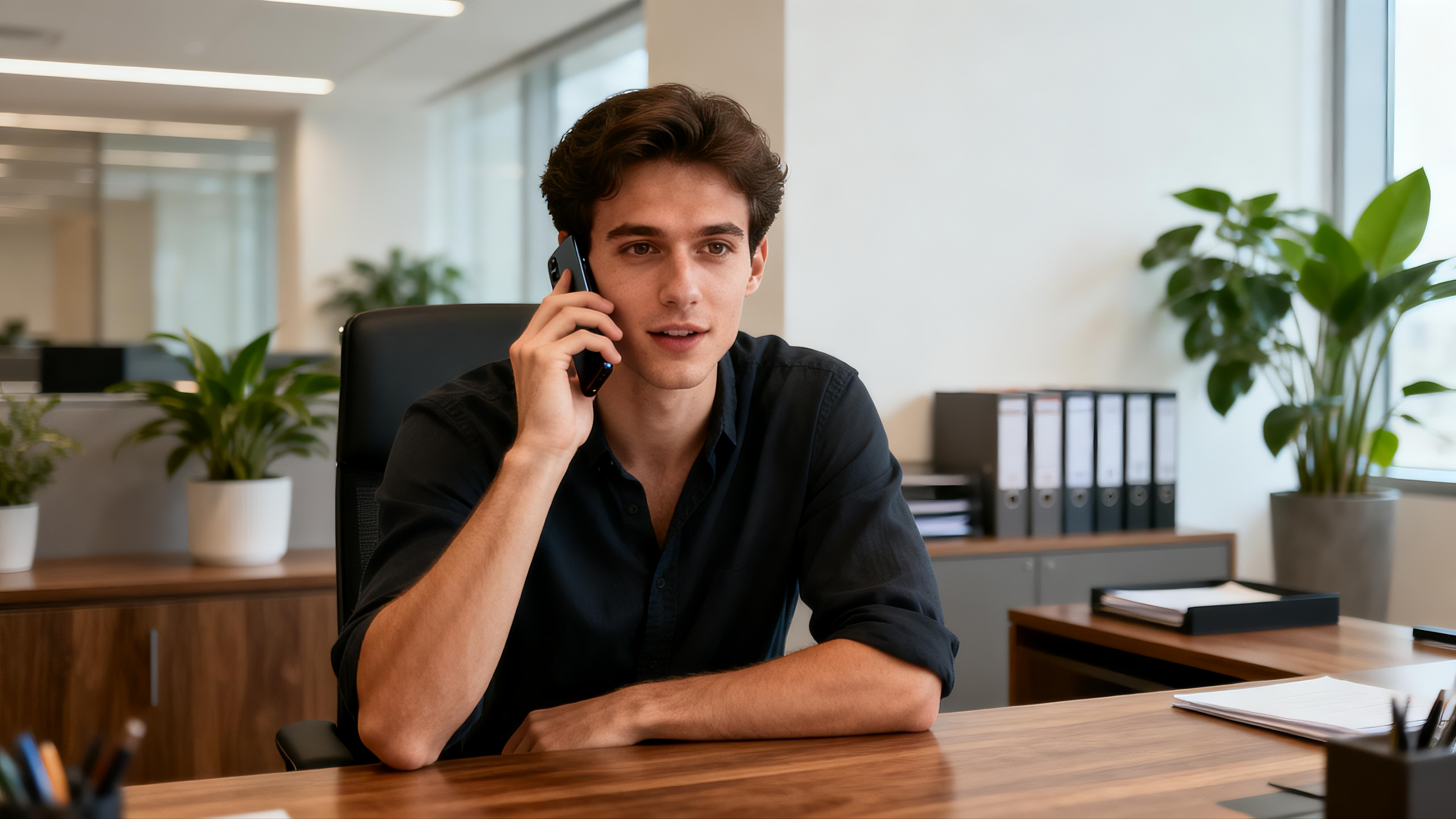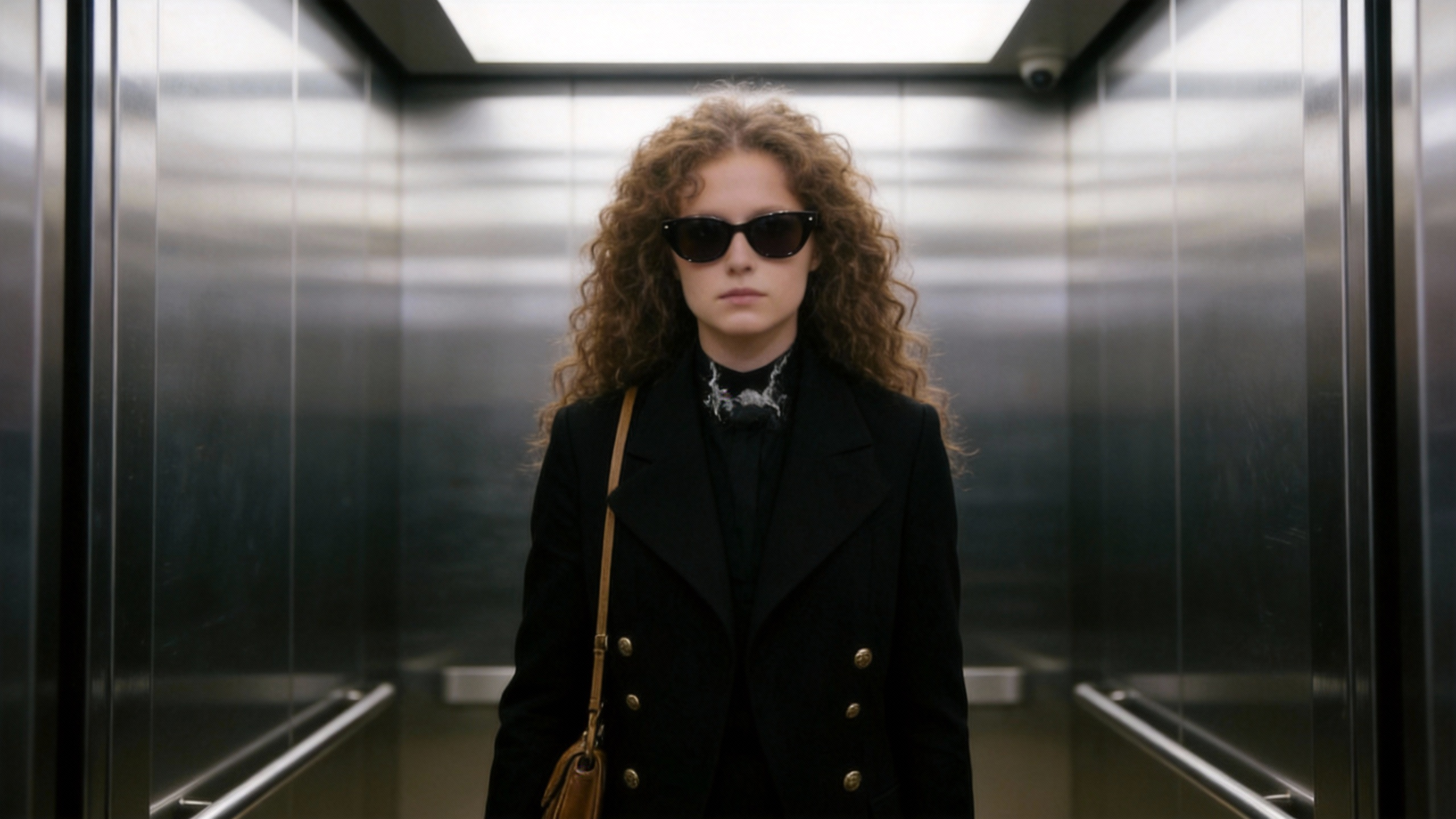 The texture of the real workplace, long shots without switching from end to end, the mid-range shots of working women are steadily followed throughout the whole process, the camera moves synchronously with the characters: when the characters walk, the camera follows them simultaneously, and when the characters pause, the camera freezes immediately, the movements are natural and coherent, and the camera moves smoothly. The woman walked forward out of the elevator, and the elevator door closed slowly and naturally behind her. She walked into the office area, took off her sunglasses with her hands, put them into her commuting bag, and nodded naturally to the colleagues she passed along the way. She paused briefly, and the camera stopped simultaneously. She hung her commuting bag on a hanger in the office area, then took off her outer coat and hung it on the same hanger. After hanging her clothes, she continued to move forward, the camera follows simultaneously; a boy wearing a standard shirt walks forward and hands over a document and a signature pen. She stops and the camera remains still, and then signs the document; after signing, she continues to move forward, and the camera follows simultaneously; finally she walks to the desk, sits down by the chair, reaches out to pick up a cup of tea on the table, lowers her head and sips it, her movements are relaxed and natural.